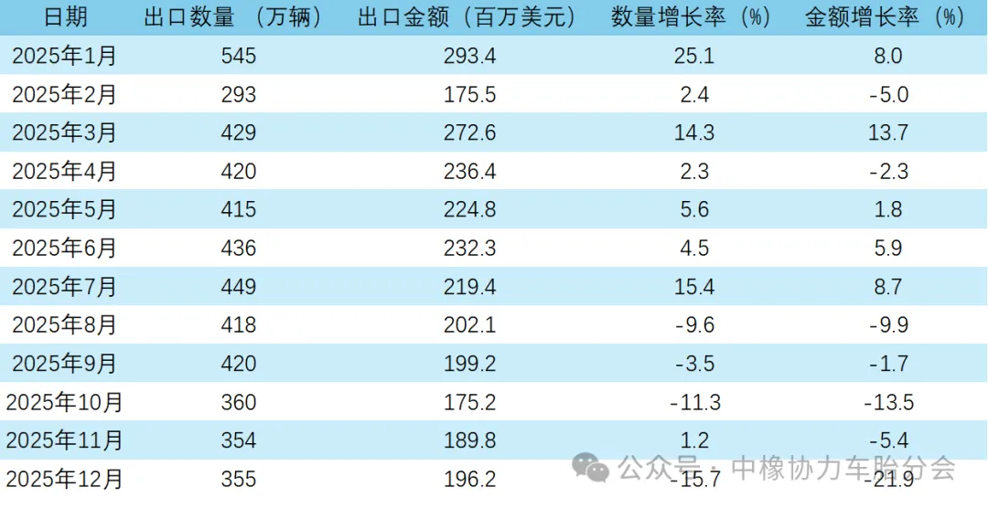 2025年12月中国自行车出口量及金额增长情况